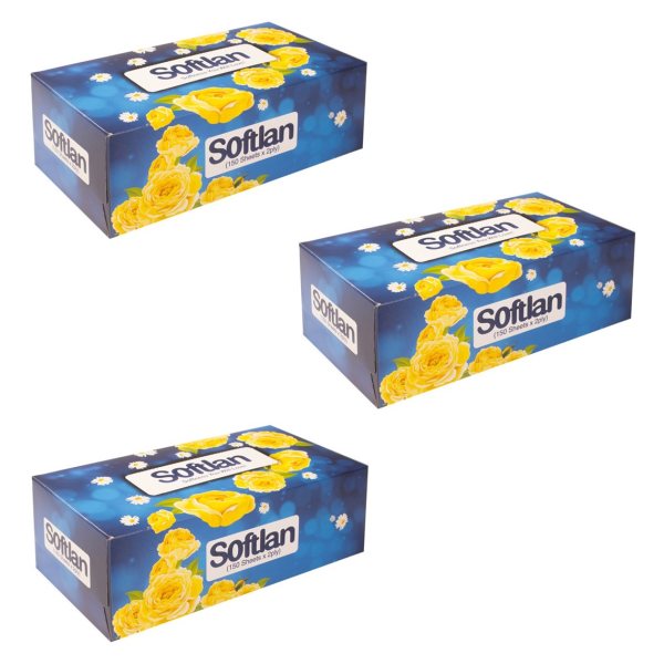 دستمال کاغذی 150 برگ سافتلن مدل شکوفه رز بسته 3 عدد