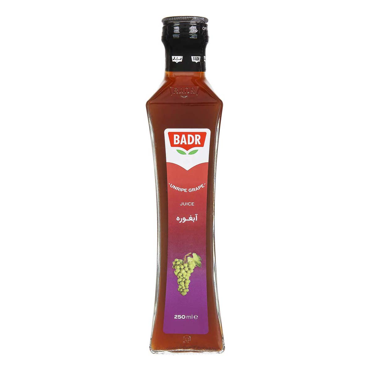 یکی از چاشنی های سنتی که در طب ایرانی و سنتی نیز اهمیت ویژه ای دارد، آبغوره است. آبغوره 500 میلی گرم بدر با طبع سرد و خشک خود سطح بسیار بالایی از ویتامین C دارد که برای درمان بیماری اسکوربوت مناسب است. علاوه بر آن با مصرف آبغوره 500 میلی گرم بدر در وعده های غذایی و با تهیه سالاد میتوانید از خواص آن برای تقویت کبد، ضدعفونی کردن روده ها و درمان نرمی لثه استفاده کنید.آبغوره 500 میلی گرم بدر به بهبود بهتر هضم غذا نیز کمک می کند و به همین دلیل مناسب افراد مسنی است که به خاطر کاهش اسید معده به خوبی نمی توانند غذا را هضم کنند. اما با استفاده از چاشنی آبغوره با غذا امکان تسهیل هضم غذا فراهم می شود. در کنار خواص بسیار زیاد و بی نظیرآبغوره 500 میلی گرم بدر برای سلامتی باید عوارض و مضرات آن را هم در نظر داشته باشید. زیاده روی در مصرف آبغوره در دوران بارداری ممکن است که به سقط جنین منجر شود. علاوه بر آن افرادی که کبد سرد و مشکلات زخم معده یا بالا بودن اسید معده دارند، به هیچ وجه نباید انواع آبغوره را استفاده کنند. با خریدآبغوره 500 میلی گرم بدر از بازار فی شاپینگ می توانید از این چاشنی سنتی برای کاهش وزن خود استفاده کنید. علاوه بر آن قیمت آبغوره 500 میلی گرم بدر در بازار فی شاپینگ به قیمت درج شده روی کالا به فروش می‌رسد و هزینه ای بابت تحویل رایگان درب منزل کمتر از ۳۰ دقیقه نمی پردازید.