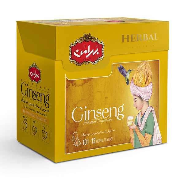 دمنوش جنسینگ بهرامن بسته 12 عددی: یکی از نوشیدنی های مورد علاقه و بدون ضرر برای افزایش انرژی در بین مردم و ورزشکاران دمنوش جنسینگ می باشد. که علاوه بر افزایش انرژی باعث تقویت قوای جسمانی می شود و می تواند جایگزین دارو های انرژی زا و مکمل های نیروزا شود. دمنوش جنسینگ بهرامن بدون مواد نگهدارنده شیمیایی و هرگونه مواد افزودنی، از ترکیب تازه ترین و مرغوب ترین گیاهان ساخته شده. در تی بگ‌های ابریشمی بدون دخالت دست و با جدیدترین تکنولوژی‌های روز دنیا بسته‌بندی می‌شود. مزیت این نوع بسته بندی، حفظ طعم و رنگ بیشتر دم‌نوش است. ترکیبات بکار رفته در این دمنوش جینسینگ، هل، دارچین، زنجبیل و گل محمدی است. به چند مورد از اصلی ترین خواص دمنوش جنسینگ اشاره می کنیم: - پایین آمدن استرس، کاهش خستگی، افزایش فعالیت بدنی و بالا رفتن انرژی. - تقویت و رشد مو، رفع بو دهان و سلامت پوست - بهبود سرماخوردگی، رفع خستگی و خواب آلودگی، افزایش گردش خون - کنترل قند خون، پیشگیری از بیماری‌های قلبی. - تسکین درد قاعدگی - بهبود خشکی لب و درمان آلرژی پوستی توصیه می شود خانم‌های باردار و شیرده با مشورت پزشک، از این محصول استفاده کنند.