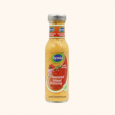 سس هزار جزیره 250 میلی لیتر رمیا از ترکیب سس مایونز و سس کچاپ در کنار پیاز قرمز، سیر، خیارشور، فلفل تند، سرکه سفید، نمک و سایر ادویه ها تهیه میشود. یک سس خوشمزه که در کنار سالاد ها و ساندویچ ها طعم مطلوبی به غذا می دهد. البته این سس در هر قاشق غذاخوری حدود ۷۳ کیلو کالری انرژی دارد و همین دلیل پیشنهاد می کنیم که در مصرف سس هزار جزیره زیاده‌روی نکنید. فروش سس هزار جزیره 250 میلی لیتر رمیا در بازار فی شاپینگ به قیمت درج شده روی کالا انجام می‌گیرد و هزینه ‌ای بابت تحویل رایگان محصول کمتر از ۳۰ دقیقه درب منزل نمی پردازید.