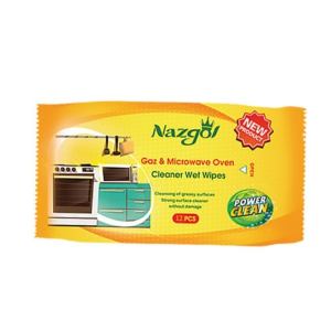 دستمال مرطوب گاز پاک کن نازگل مدل 001 بسته 12 عددی امکانات شوینده سطوح تمیز کنندگی براق کنندگی لکه زدایی ضدغبار ضدعفونی کنندگی