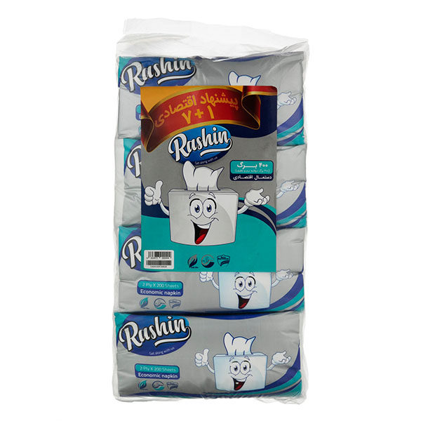 دستمال کاغذی 200 برگ راشین مدل آبی - بسته 8 عدد