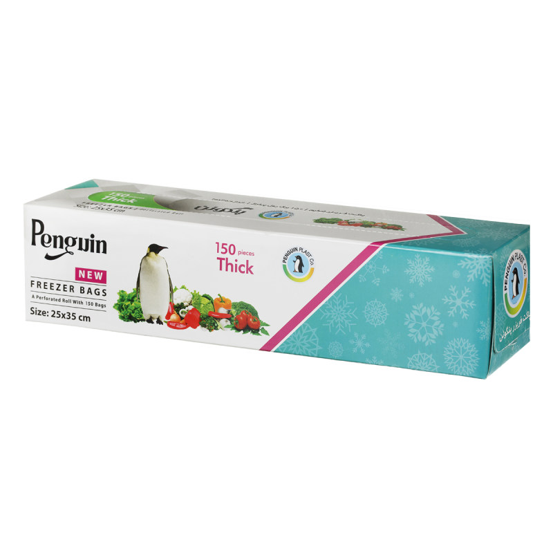 کیسه فریزر پنگوئن مدل رولی بسته 150 عددی مشخصات ابعاد ۳۵x۲۵x۰.۱ سانتیمتر تعداد ۱۵۰عدد کاربرد روزمره