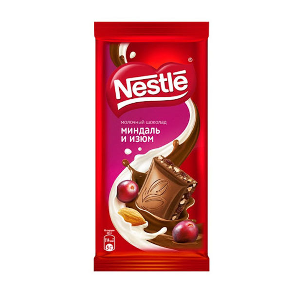 شکلات شیری با مغز بادام و کشمش نستله - 90 گرم