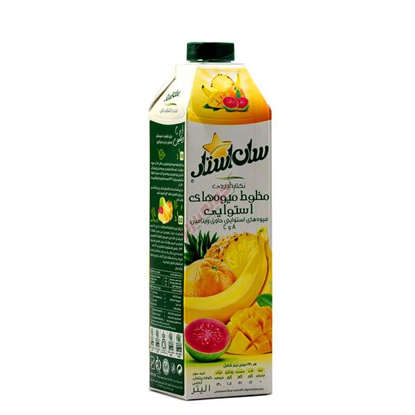 نوشیدنیها و آبمیوهها به دلیل اینکه در ترکیب آن از آبمیوه استفادهشده است، به نسبت خلوصی که دارند، میتوانند جایگزین مناسبی برای میوهها باشند. نکتار ها نیز یکی از نوشیدنیهایی است که 50% حجم آن را آبمیوه تشکیل داده است اما این درصد برای نوشیدنیهای ترکیبی مانند مخلوط میوههای استوایی، مقدار مناسبی است. نکتار مخلوط میوههای استوایی یکی از سان استار است که 50% حجم آن آبمیوه است و از ترکیب میوههای انبه، موز، پرتقال، گواوا و آناناس تشکیلشده است. این نوشیدنی 1 لیتری، حاوی ویتامینهای A و C که میتواند سیستم ایمنی بدن را تقویت کند و بینایی را بهبود دهد. نکتار میوههای استوایی سان استار 541.6 کیلوکالری انرژی دارد که برای یک میان وعده مقدار مناسبی است.