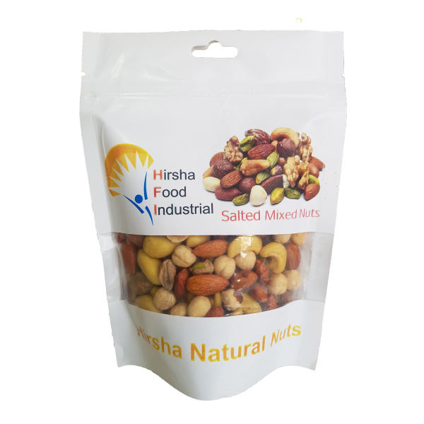 آجیل مغز نمکی هیرشا از مغز پسته اکبری ، بادام هندی شور ، مغز بادام درختی شور، مغز فندوق بدون پوست تشکیل شده است. از نکات مهم محصولات هیرشا به کیفیت و تازگی خشکبار و بهداشتی بودن بسته بندی می توان اشاره کرد.
