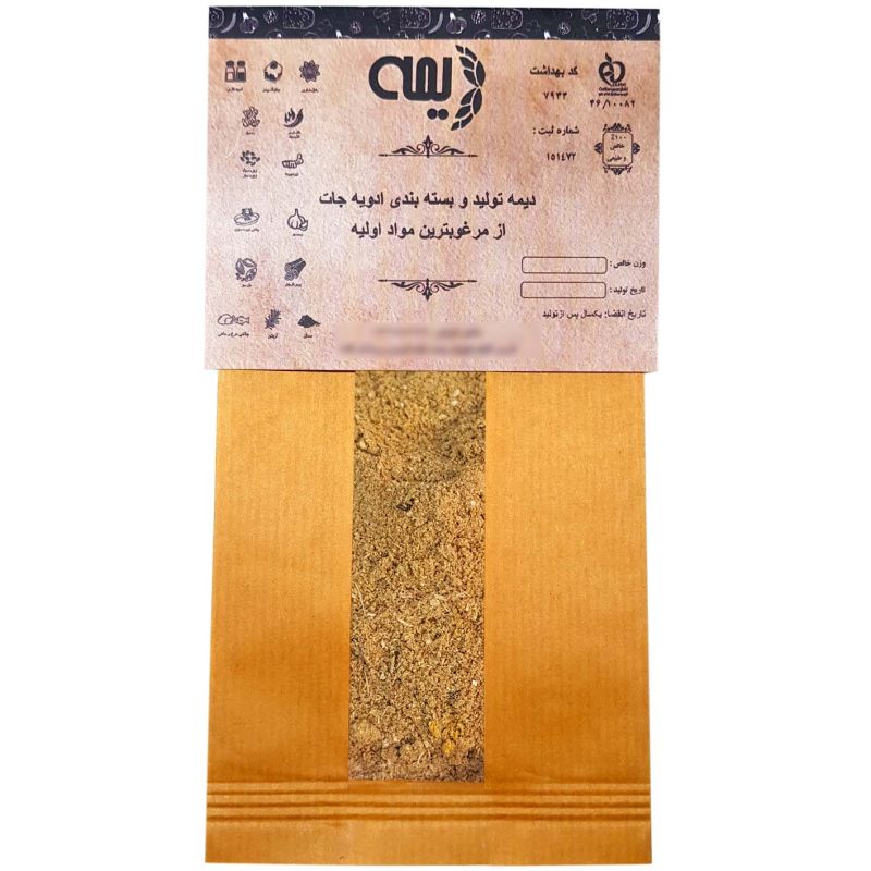 ابعاد بسته‌بندی ۱۹x۱۲ سانتی‌متر شماره پروانه بهداشت ۴۶۱۰۰۸۲ ارگانیک بله شکل ماده غذایی پودر
