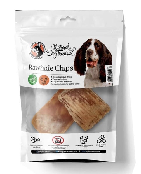 تشویقی چیپس پوست گاو، مخصوص سگ، 100 گرمی، برند هاپومیل : - تشویقی طبیعی چیپس پوست گاو - جویدنی بسیار دوست داشتنی برای سگ ها