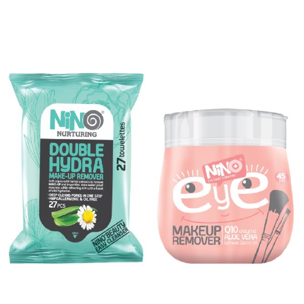 دستمال مرطوب پاک کننده آرایش نینو مدل Double Hydra بسته 27 عددی به همراه دستمال مرطوب پاک کننده آرایش نینو مدل EYE بسته 45 عدد