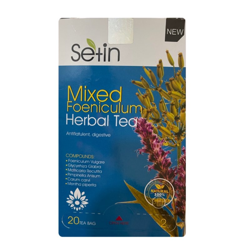 دمنوش رازیانه ترکیبی ستین بسته 20 عددی: این دمنوش ، دمنوش رازیانه ترکیبی میباشد که برای بهبود نفخ بسیار مفید است . ترکیبات آن : رازیانه ، بابونه ، انیسون ، زیره سیاه ، نعناع فلفلی و شیرین بیان میباشد .