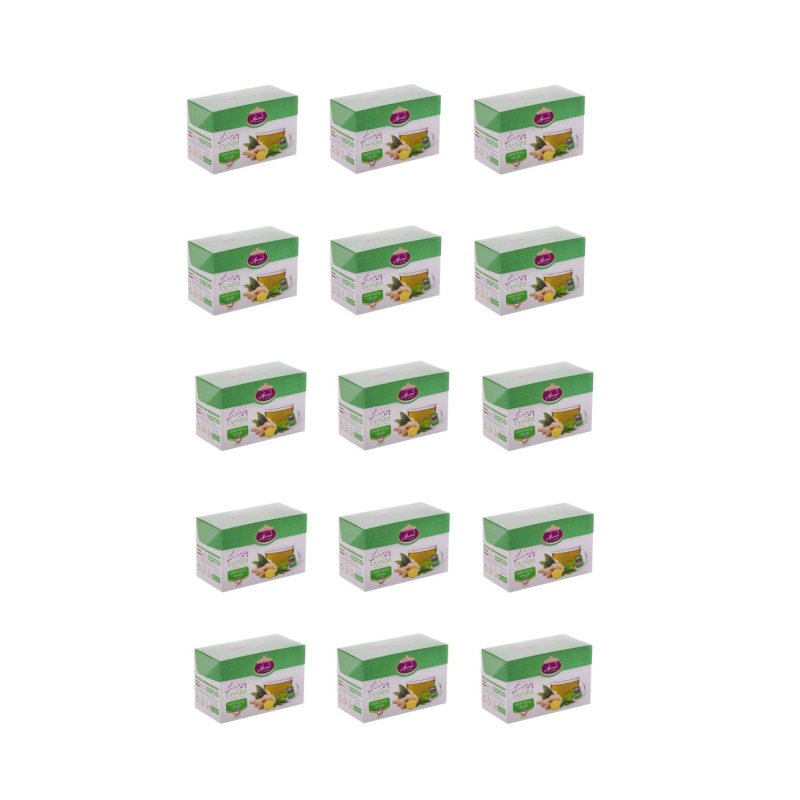 دمنوش کیسه ای چای سبز و زنجبیل تسنیم طلایی مجموعه 15 عددی: