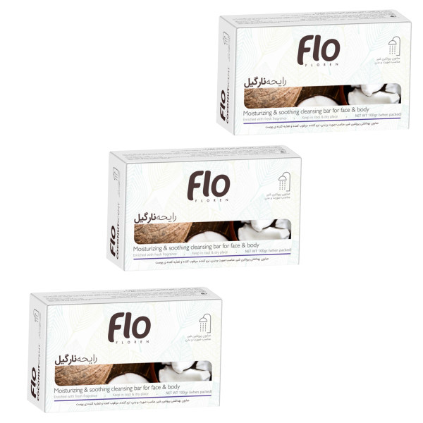 صابون شستشو فلو مدل نارگیل وزن 100 گرم مجموعه 3 عدد