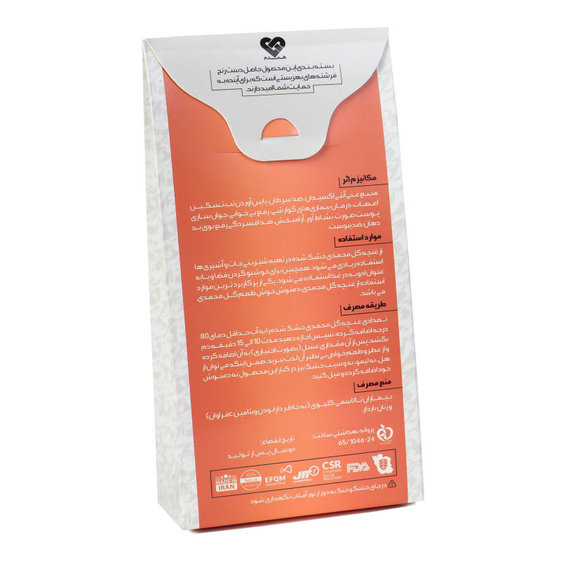 غنچه گل محمدی آنید - 40 گرم: غنچه گل محمدی یکی از انواع گل سرخ و متعلق به گیاهانی از خانواده Rosaceae است. نخستین زادگاه این خوش عطر و پر خاصیت، سرزمین ایران کهن است. از آنجایی که گلهای محمدی ایرانی، در آب و هوای سرد و خشک کاشته و کشت میشوند،به همین دلیل معمولا فاقد انواع آفات و بسیار ارگانیک هستند. در تولید غنچه گل محمدی خشک ایرانی، به هیچ عنوان از آفت کشها و سموم استفاده نمیشود، به همین دلیل، کیفیت بسیار بالایی دارند. این گل اغلب در مناطق مرتفع و خشک کشت میشود. غنچه گل محمدی نام نوعی گل رز است که از برخی نمونه های آن گلاب میگیرند. این گونه از رز مقاومت بالایی در مقابل کمآبی دارد و در شهرهای بزرگ به خوبی رشد میکند. گل محمدی درختچه ای برگریز است که ارتفاع آن به 2.2 متر نیز می رسد و شاخه های آن با خارهای تیز و محکمی حفاظت می شود. گل محمدی طیف رنگی از صورتی روشن و متوسط تا سرخ روشن دارد.
