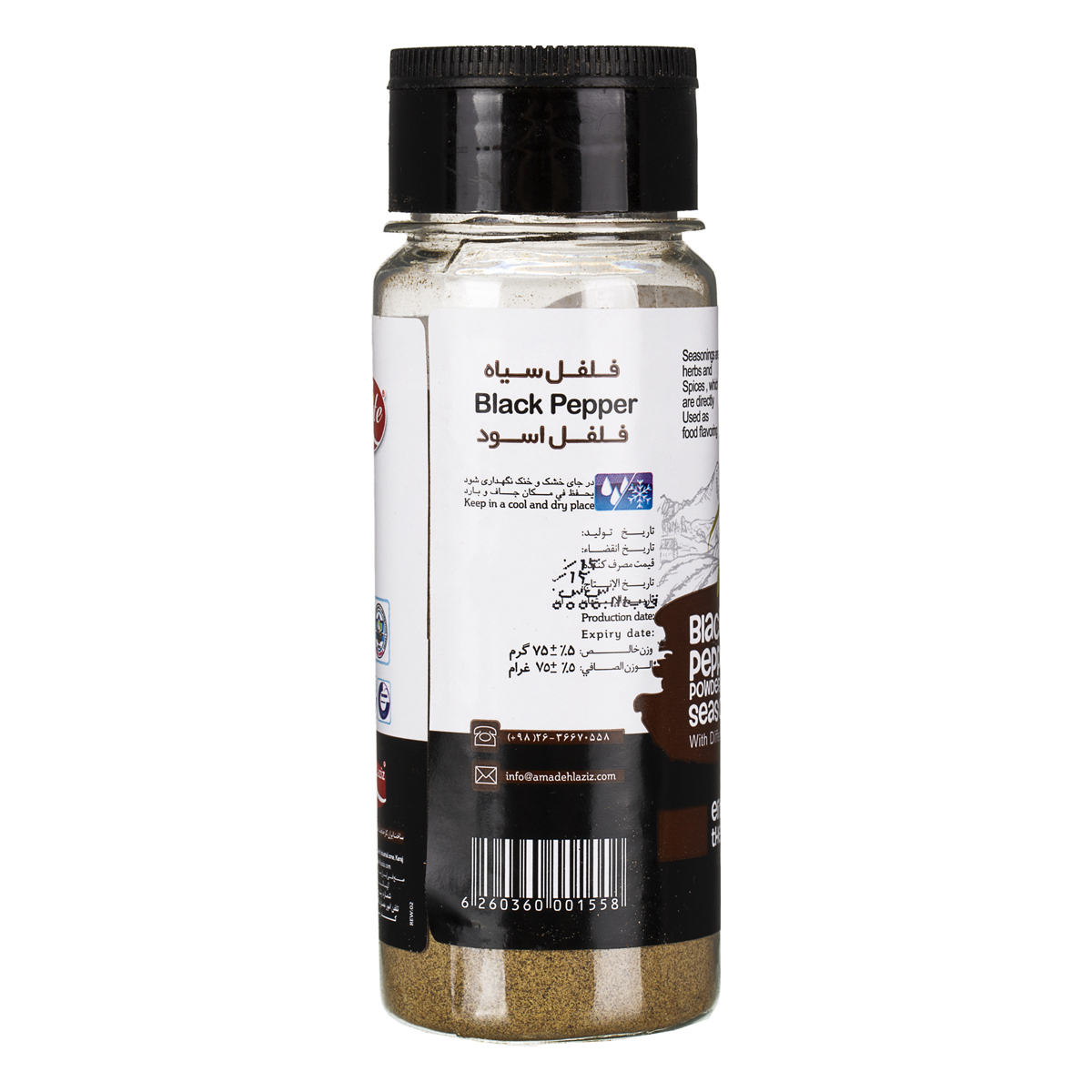 پودر فلفل سیاه الیت تهیه شده از دانه های فلفل سیاه مرغوب