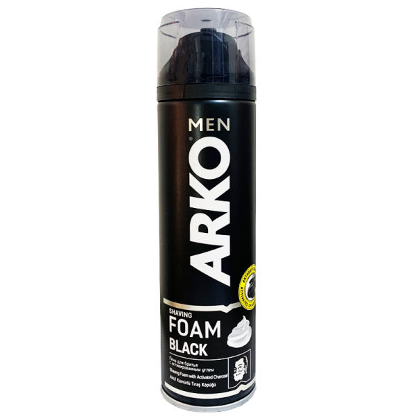 فوم اصلاح آرکو من مدل BLACK حجم 200 میلی لیتر ویژگیهای محصول بهداشتی ضد باکتری ترکیبات بدون عصاره سازگار با پوستهای معمولی صادر کننده مجوز سازمان غذا و دارو حجم 200 میلیلیتر