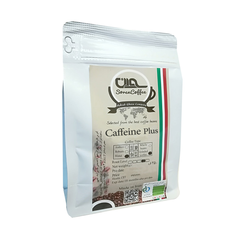 پودر قهوه اسپرسو مدل کافئین پلاس ترکیب تخصصی قهوه سورن از دانه های عربیکا و روبوستا با درجه روست مدیوم دارک است. اسپرسو کافئین دارای عطر قوی و تلخی بالا ، اسیدیته متوسط ، بادی (body) قوی و خامه (Crema) نسبتا بالا است. همچنین قهوه تازه رست شده و تازه آسیاب شده، و تولید به روز محصول مناسب جهت استفاده در دستگاه های اسپرسو ساز خانگی ـ موکا پات ، همچنین قهوه ساز های دمی میباشد. عطر و طعم تند و پیچیدهی مرکباتی و کاکائویی در ترکیب اسپرسو کافئین پلاس سورن سورن قابل حس است. اسپرسوکافئین پلاس بصورت حرفه ای و با توجه به ذائقه ی قهوه نوش ایرانی فراوری شده و با افتخار یک محصول تولید داخل است.