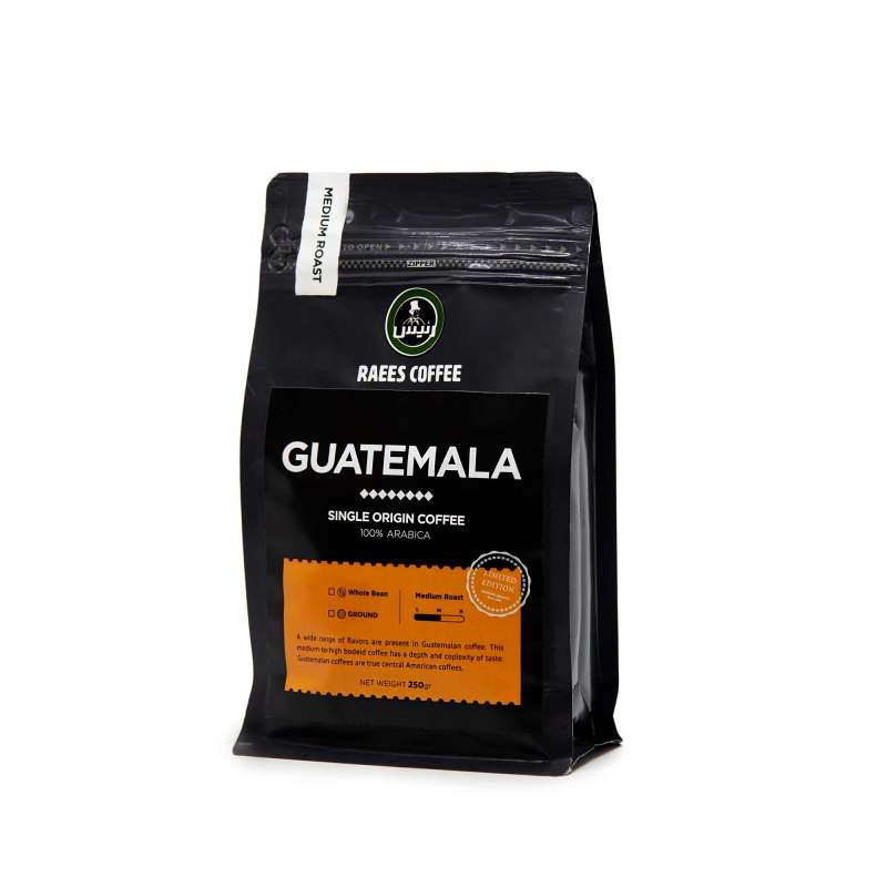دانه قهوه گواتمالا مدیوم روست رئیس - 250 گرم: طیف گسترده ای از طعم ها در قهوه گواتمالا وجود دارند. این قهوه با غلظت متوسط تا زیاد، دارای عمق و پیچیدگی در طعم است. قهوه های گواتمالا، معنای واقعی قهوه آمریکای مرکزی هستند.
