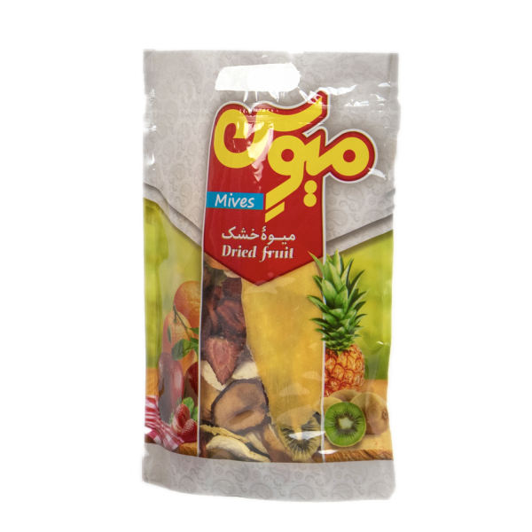 بسته بندی سوپر پک مخلوط میوِس شامل پنج میوه از میوه خشک های کیوی پرتقال سیب هلو آلو شابلون توت فرنگی انبه آناناس طبیعی میباشد.بسته بندی فوق تهیه شده از بهترین میوه ها و دارای مجوز سیب سلامت میباشد.بهترین میان وعده برای مصرف روزانه میباشد.
