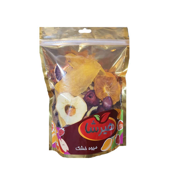 میوه های خشک هیرشا از حداقل 5 میوه خشک تهیه شده است. از مزایای محصولات هیرشا می توان به تازگی محصولات و بسته بندی بهداشتی اشاره کرد.سیب ، خرمالو ، هلو ، پرتقال تو سرخ ، آلو شابلن و انبه یا توت فرنگی میوه های موجود در بسته بندی میوه های خشک هیرشا است