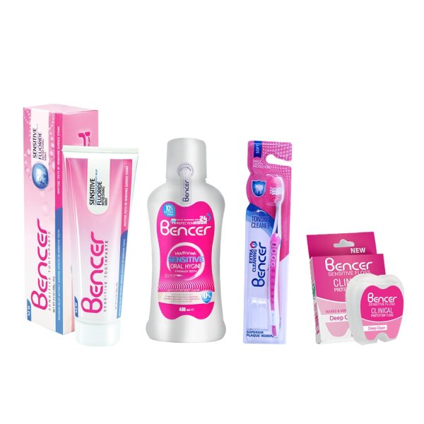 نخ دندان بنسر مدل sensitive به همراه مسواک با برس نرم و دهانشویه حجم 400 میلی لیتر و خمیر دندان حجم 100 میلی لیتر