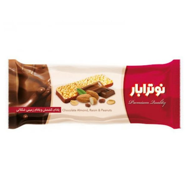 نوترابار شکلاتی با مغز بادام و کشمش - 30 گرم بسته 20 عدد