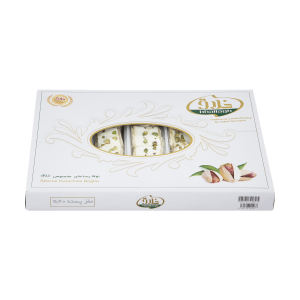 نوقا پسته ای 40 درصد مخصوص خلاق - 300 گرم: نوقا پسته ای یکی از شیرینی های سنتی تبریز می باشد که مواد تشکیل دهنده آن شکر - گلوکوز - سفیده تخم مرغ - هل - وانیل و مغز پسته می باشد که از طعم و مزه فوق العاده متفاوت با آنچه در گز هست می توان به عنوان سوغاتی و کادو استفاده کرد. این محصول به همراه چای در عصرانه و مهمانی سرو می گردد.