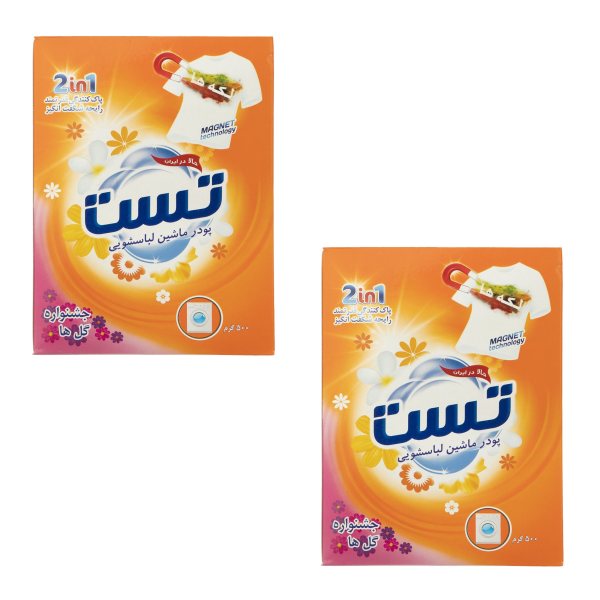 پودر ماشین لباسشویی تست مدل گلها وزن 500 گرم بسته 2 عدد