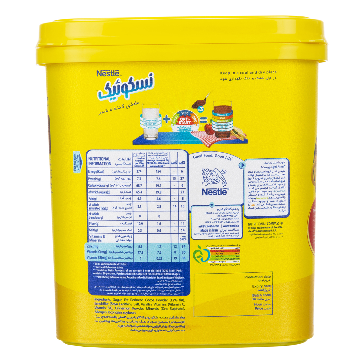 پودر مخلوط کاکائو کم چرب شیرین نسکوئیک 450 گرم نستله : مغذی کننده شیر - حاوی زینک و ویتامن های B1 و C ، ترکیب: شکر - پودر کاکائو با چربی کاهش یافته - امولسیفایر - نمک - وانیلین - ویتامین ها - پودر دارچین - آب معدنی - سویا