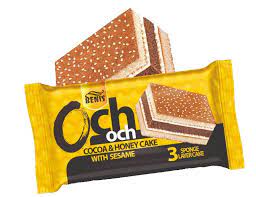 کیک سه لایه كرم عسلي اوچ اوچ با تزيين كنجد بنیس با طعم عالی و کیفیت بسیار خوب ارزش غذایی بالا وبسته بندی مطلوب