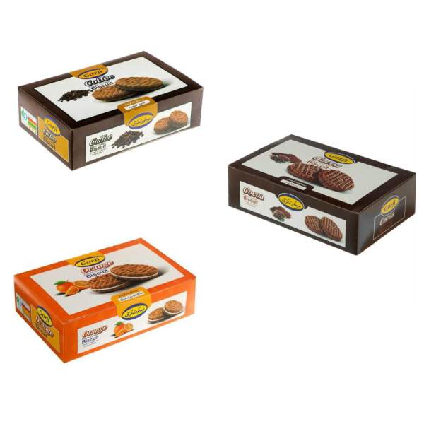 بیسکویت کرم دار کاکائو و پرتقالی و قهوه گرجی - 380 گرم بسته 3 عدد