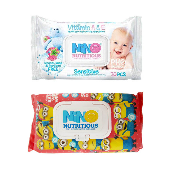 دستمال مرطوب کودک نینو مدل Sensitive بسته 70 عددی به همراه دستمال مرطوب کودک نینو بسته 50 عدد
