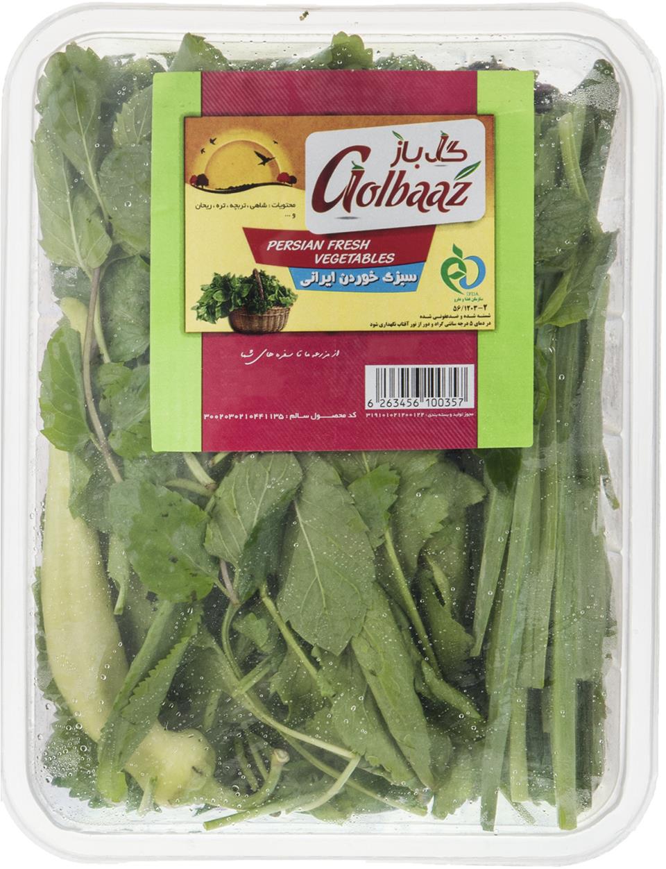 سبزی خوردن 200 گرم گل باز : بسته ی سبزی خوردن برند گل باز (Golbaaz ) حاوی انواع سیزیجات مانند تره، شاهی، تربچه، ریحان و فلفل است که هرکدام خواص ویژه و مخصوص به خود را دارند. سبزی خوردن گل باز در مزارع کشاورزی گل باز کشت و برداشت شده است و محصولی کاملاً سالم، شسته شده و بهداشتی برای مصرف است هرچند قبل از استفاده بهتر است سبزیجات را به خوبی شست و ضدعفونی کرد. محصولات گل باز دارای شماره مجوز بهداشت از سازمان غذا و دارو و کاملاً مطمئن هستند.