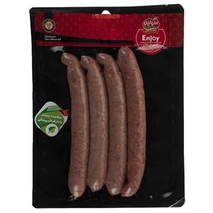 سوسیس ۹۰% انجوی ترکیبی خالص از گوشت گوساله و ادویه با روکش روده طبیعی گوسفند بهترین روش طبخ محصول: روی حرارت مستقیم زغال یا شعله قابل پخت به روش سرخ کردن در ماهیتابه بدون روغن و آب پز کردن سوسیس ۹۰ درصد گوشت قرمز ارزش غذایی در ۵۵ گرم: - انرژی: ۱۰۴ کیلوکالری - چربی: ۶.۵۸ گرم - نمک: ۰.۷۴ گرم - اسیدهای چرب ترانس: ۰.۰۹۹ گرم - فاقد قند