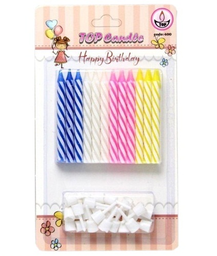شمع تولد پایه دار 24 عددی اعلا : - جنس پارافین - مناسب برای جشن تولد و سایر مراسمات - دارای پایههای کوچک جهت قرار گیری در کیک