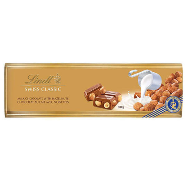 شکلات تخته ای شیری شکلاتی گلد با مغز فندق لینت - 300 گرم
