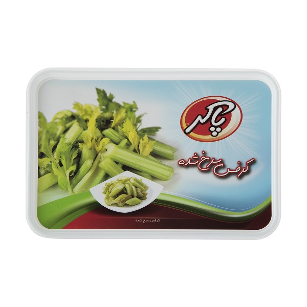کرفس سرخ شدهی نگینی پاکر یکدست و نگینی خرد شده، با حرارت مناسب و روغن مرغوب سرخ شده تا بافت دلچسب آن حفظ شود.