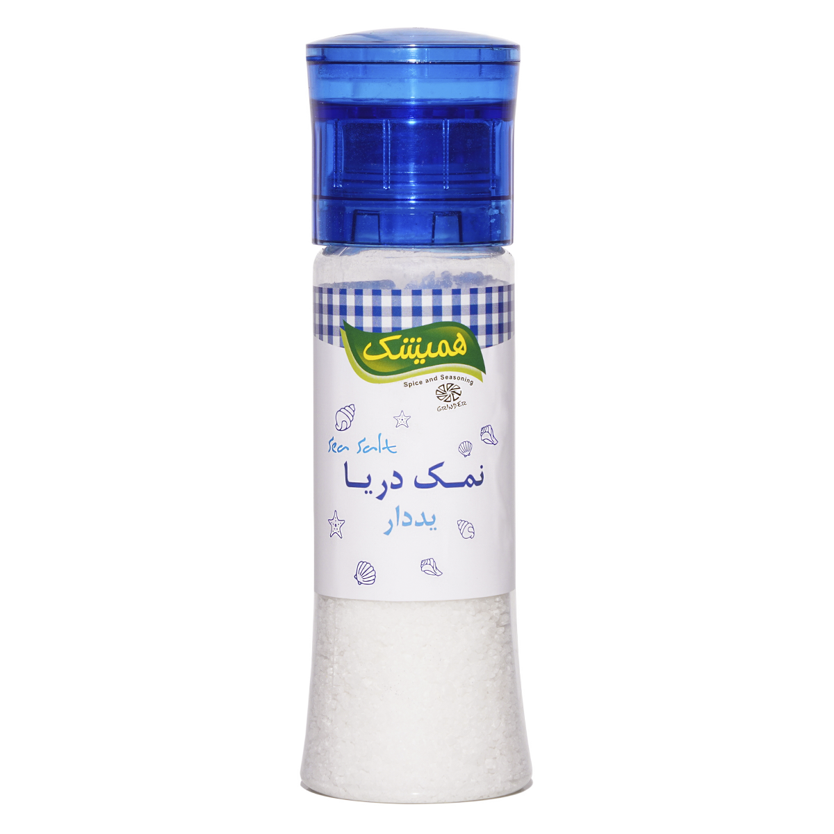 نمک ساب یا گرایندر نمک دریا 250 گرم همیشک ابزار بسیار خوبی برای حفظ طعم و عطر نمک های صورتی و نمک دریایی است. نمک های دریایی و صورتی ارزش غذایی بالایی دارند و از طرف دیگر قیمت بیشتری نسبت به های معمولی دارند. به همین دلیل برای جلوگیری از مصرف بی رویه آن ها و محافظت از نمک در برابر رطوبت، خرید گرایندر نمک را از بازار فی شاپینگ به شما پیشنهاد می کنیم. با استفاده از نمک ساب و گرایندر نمک دریا 250 گرم همیشک امکان حفظ طعم و مزه قوی بلورهای نمک فراهم می شود. علاوه بر آن از رسیدن رطوبت محیط به تکه های نمک جلوگیری شده و با تنظیم مقدار استفاده، جلوی مصرف بی رویه نمک را می گیرید. قیمت گرایندر نمک دریا 250 گرم همیشک در بازار فی شاپینگ به قیمت درج شده روی کالا به فروش میرسد و هزینه اضافی بابت تحویل رایگان درب منزل کمتر از ۳۰ دقیقه نمی پردازید.