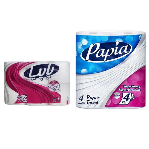 دستمال کاغذی حوله ای و دستمال توالت پاپیا مدل T12_H4 مجموعه 16 عدد