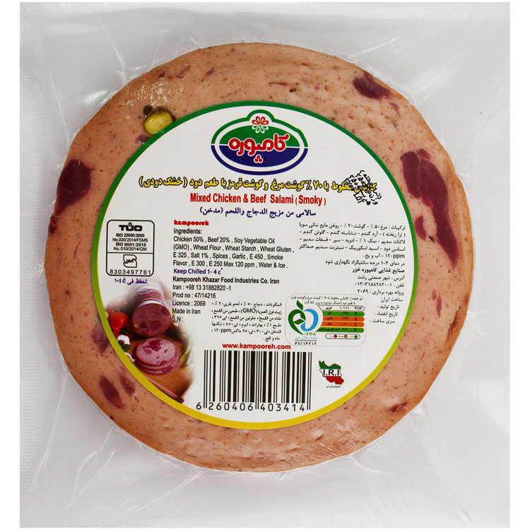 کالباس مخلوط 70% گوشت مرغ و گوشت قرمز با طعم دود کامپوره 350 گرمی