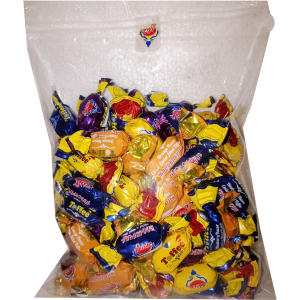 تافی دو رنگ مخلوط میوه ای آدرین - 500 گرم: طعم بلوبری پرتقال توت فرنگی سیب ترش لیمو مخلوط میوه