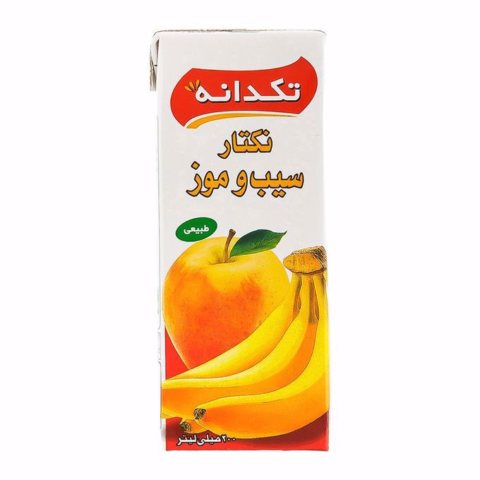 آب سیب وموز 200 میلی لیتر تکدانه : کیفیت و طعم بسیار خوب و قیمتی مناسب در بسته بندی 200 میلی لیتر برند تکدانه با طعم سیب و موز حاوی ویتامین ث، ترکیبات پلی فنول و ترکیبات آنتی اکسیدانهای طبیعی نکتار سیب و موز