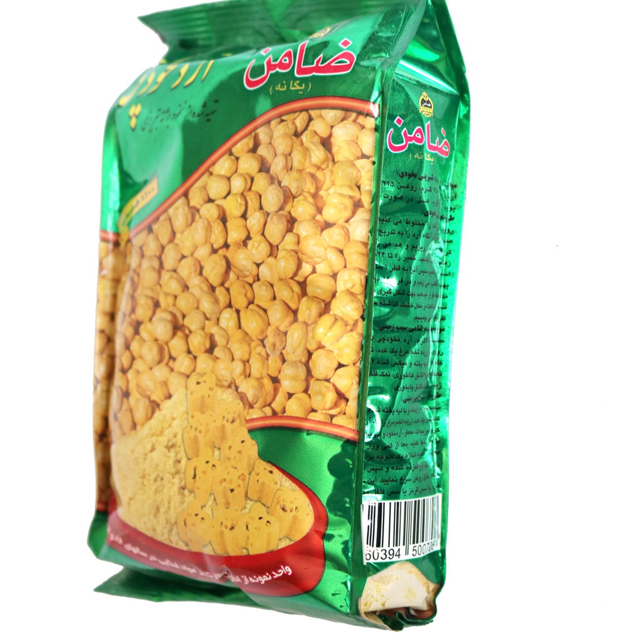 آرد نخود برند ضامن با کیفیت و درجه یک تهیه شده از بهترین مواد اولیه مناسب جهت تهیه انواع شیرینی نخودی ، حلوا ، کتلت و... تهیه شده از نخود برشته