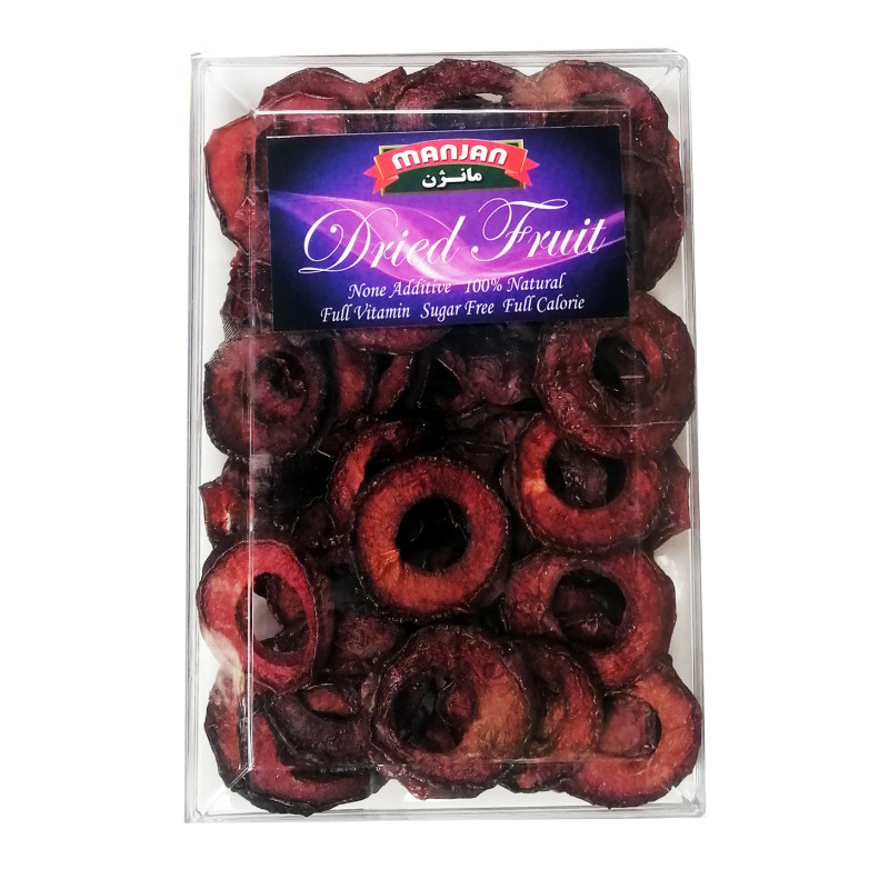 آلو قرمز خشک مانژن - 150 گرم: به طور کلی خواص بی نظیر میوه خشک برای سلامتی فوق‌العاده است، استفاده از آلو شابلون خشک برای افرادی که بیماری قلبی دارند مفید است زیرا سبب می‌شود چربی‌های اضافه بدن با اکسیژن واکنش بدهند. آلو خشک رادیکال‌های آزاد را در بدن آزاد می‌کند و از تجمع آن‌ها جلوگیر می‌کند، رادیکال آزاد اثراتی مخرب بر بدن دارد، مثلا تجمع رادیکال‌های آزاد باعث آسیب به DNA شده و زمینه ساز تشکیل سلول‌های سرطانی است. تجمع رادیکال‌های آزاد باعث ایجاد بیماری‌هایی نظیر آرتریت می‌شود. آلو خشک شده فشار خون را متعادل کرده ولی بهتر است در دوز پایین و کم استفاده شود علاوه بر درمان فشار خون بالا سبب می‌شود تا دیابت و بیماری مقاومت به قند را نیز درمان کند. زیرا باعث جذب و هضم سریع غذا می‌شود و قند موجود در غدا را به راحتی و در زمان کم آزاد می‌کند به همین دلیل درمان موثری در کنترل قند می‌تواند باشد.