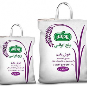 برنج خوش پخت ایرانی پردیس10ک خوشپخت و طعم و بوی عالی . بسته بندی و ارزش غذایی بالا دلیلی قشنگ برای کنار هم بودن