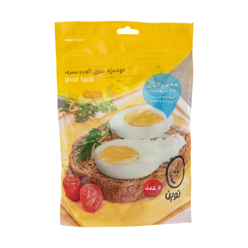 تخم مرغ آب پز بدون پوست نوین بسته 6 عددی