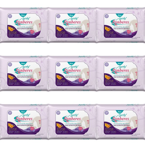 دستمال مرطوب پاک کننده آرایش پنبه ریز کد 20 مجموعه 9 عدد