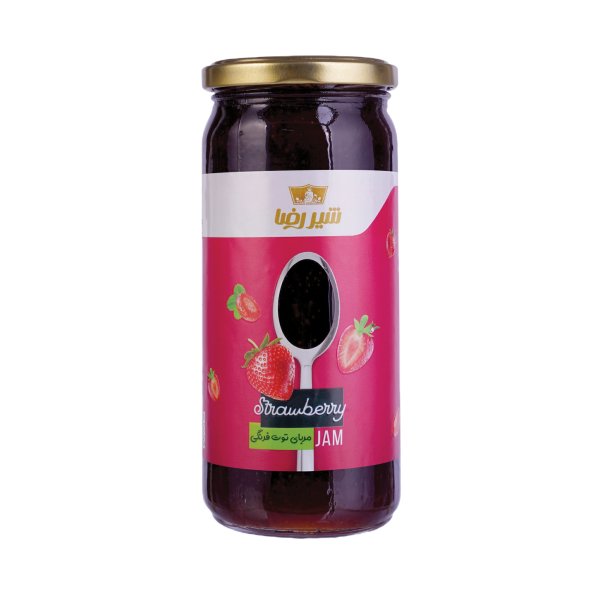 مربا ارگانیک توت فرنگی شیررضا 600 گرمی در بسته بندی شیشه ای