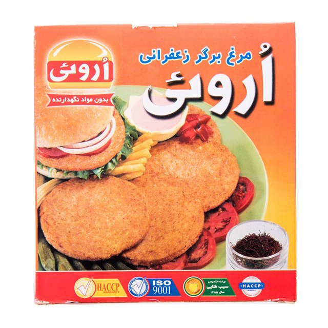 مرغ برگر زعفرانی 60% گوشت اروئی 400 گرمی