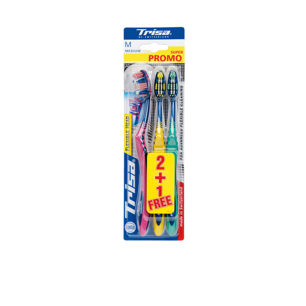 مسواک تریزا سری Super Promo مدل Flexible Head با برس متوسط - بسته 2+1 عدد