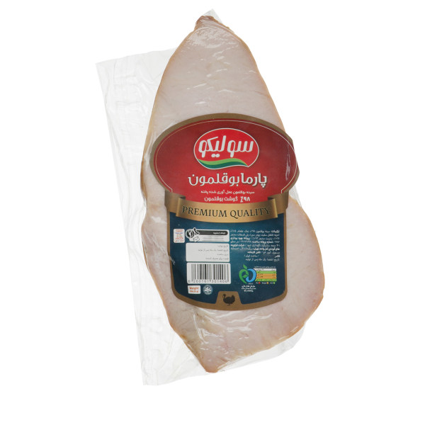 ترکیبات: سینه بوقلمون ۹۸%، نمک طعام، ادویه، پلی فسفات سدیم، نیتریت سدیم ارزش غذایی در ۵۵ گرم: انرژی: ۹۱ کیلوکالری قند: ۰ گرم چربی: ۳.۲ گرم نمک: ۰.۴۴ گرم اسیدهای چرب ترانس: ۰.۰۰۵ گرم
